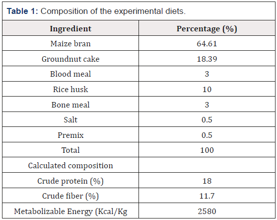 In recent years interest in rabbit production in Nigeria has increased to improve supply of animal protein from fast growing animals with short gestation period and short generation interval. However, competition between man, animals and industries for conventional feed resources and high cost of compounding concentrate has become a major constraint militating against increased production. The increasing cost of conventional feed ingredients with the resultant increase in the cost of livestock products has necessitated research in the search for cheaper and readily available alternative feed ingredients for livestock feeding. Studies have shown that rabbit can thrive on a number of tropical forages supplemented with concentrate [2,3], but concentrate rations are expensive and can be a constraint to exploitation of the potential of rabbit. Therefore, a feeding strategy that will engage sparing use of concentrate and dependence on forages will be of immense benefit [1]. Such forages must be abundant, available all year round and accessible. Amanranthus hybridus is a widely known leaf vegetable, the foliage of which is utilized and usually discarded as waste. Ficus thoningii is a tree species that is widely distributed in many savanna areas of Nigeria which is also less compete for by man. Utilization of A. hybridus stem and F. thoningii foliage by animals can reduce waste and decrease cost of production. This study was carried out to evaluate the feeding potentials of A. hybridus stem and F. thoningii foliage as supplements to concentrate diet for weaner rabbits.