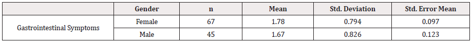 gastrointestinal symptoms and gender (p = 0.64) (Table 2). There