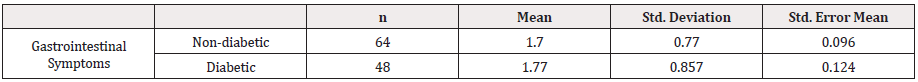 Conclusion: The prevalence of gastrointestinal symptoms is high in elderly dialysis patients and these symptoms cause a major health burden in their daily life. Our study showed no significant relationship between the severity of gastrointestinal symptoms and gender. Diabetic patients showed no substantial rise in the amount or severity of gastrointestinal symptoms as compared to non-diabetic patients.