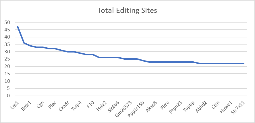 Finally, we provided the distribution of editing sites in each gene (Gene-based analysis). We selected the top ranked genes.