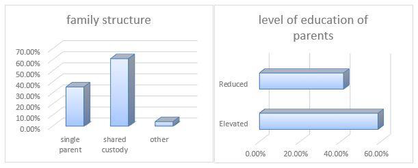 Most of the children were girls (58.5%), parents had a high level of education in 58.5% of the cases. Child custody was shared by both parents in 61%, by one of them in 35,4%, while only 4% were confined away from their parents. In addition, 3.8% of children had chronic diseases such as diabetes, asthma and celiac disease (Figure 1-3).