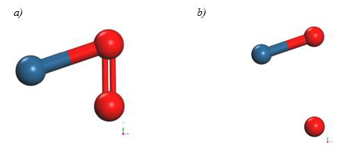 The geometry optimization of the oxygen molecule (O2) calculation, with an O = O bond distance of 1.21Å in the simulation, has been compared with an experimental value of 1.25Å [18] as shown in Figure 5.