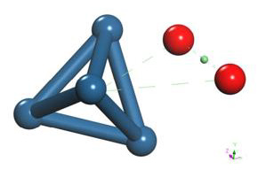The geometry optimization calculation of the C60Pt4 system is accomplished with the oxygen molecule. The geometry optimization gives an equilibrium distance of 2.048Å and an energy of -451.2475 eV, and the connectivity calculation is applied (Figure 28).