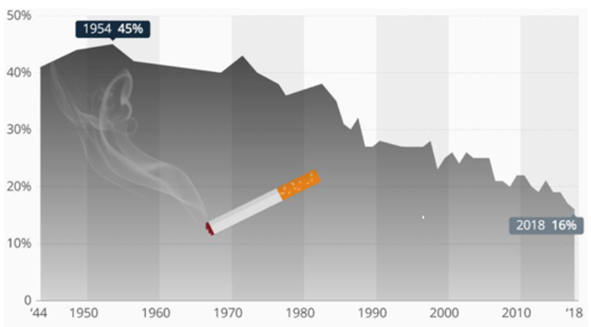 Figure 1: US Smoking Rates from 1944-2018 (www.forbes.com/forbes Statista chart on Smoking).