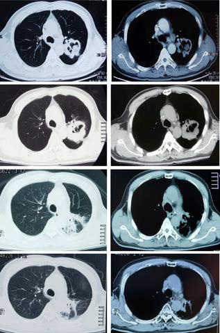 b) Chest CT images after six courses of chemotherapy.