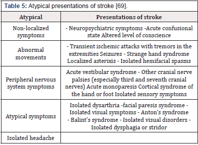 - Huggins HE, Brady M, Emma J P, Thaler DE, Leung LY (2020) Differences in presenting symptoms of acute stroke among young and older adults. J Stroke Cerebrovasc Dis 29(8): 104871.