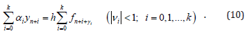 Thus receive that the relation between of the degree p and order k for the methods (2) and for the method (4) in the case γ i = 0 (i = 0,1,..., k) are the same. But in the case βi = 0 ( i = 0,1,...,k ) the conceptions of stability and the degree for the method (4) are define in others form. If the following is holds: