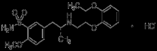 Tamsulosin Hydrochloride is an alpha-1, blocker in blood vessels that is usually administered in conjunction with diuretics to treat hypertension when other therapies are ineffective. It is used in the treatment of prostatic hyperplasia, chronic prostatitis, urinary retention, and help with the passage of kidney stones IUPAC name 5-[(2R)-2-[[2-(2-Ethoxyphenoxy)ethyl]amino]propyl]-2-methoxybenenesuphonamide hydrochloride[1-2].