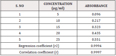 Linearity of Test Method: The ability of an assay method to yield test results that are directly proportional to the drug concentrations in samples within a certain range is known as linearity. The use of single-point calibrations is justified by linearity. Regression line’s correlation coefficient was found to be 0.999 (Table 1).