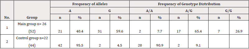 The results of molecular genetic studies of the GSTP1 gene had the following definitions, which are given in (Table 2).