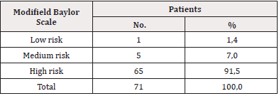 Table 2: Distribution of patients according to risk rebleeding with modifield Baylor Scale.
