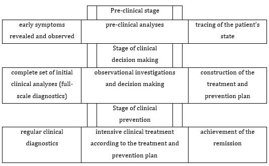 The scheme conceptually demonstrating a systemic knowledge- based approach to understanding the case and a treatment approach to the disease, which presumes (i) tracing of the patient’s state by symptoms, (ii) clinical decision making, (iii) construction of the treatment and prevention plan, (iv) undertakings bound up with prevention of HPV-induced cancer cases, -is shown in Figure 1.