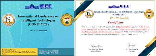 Members of the Department of Computer Technologies in Management and Education and Informatics of BSPU V Lavrik, et al., [22] had presented a research paper at a IEEE International Conference on Intelligent Technologies (CONIT-2021) during 25-27 June, 2021 organised by the KLE Institute of Technology, Hubballi, India (Lavrik, Alieksieieva, Bardus, & Shchetynina, 2021) (Figure 2). The conference focused on applications of Intelligence in Science, Communication and Computers, more specifically in the areas like Image Processing, Big Data, Wireless Networks and Cloud computing, etc (Figure 2).