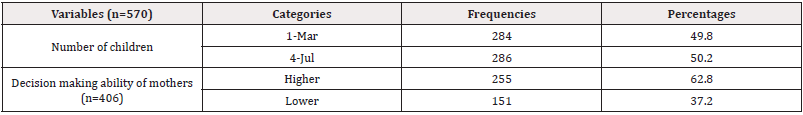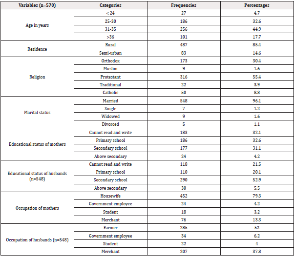 Five hundred seventy mothers gave response that made over-all response rate 96.9%. Median age of mothers was 32 with SD±4.012 (Table 7, Figure 1).