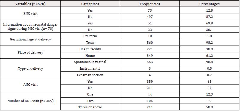 - Gizachew A, Daniel B, Berhanu E, Getu Alemu D, Keneni B, et al. (2019) Knowledge of neonatal danger signs, care seeking practice and associated factors among postpartum mothers at public health facilities in Ambo town, Central Ethiopia. BMC Res Notes 12(1): 549.