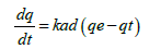 Where qe (mg/g) and qt (mg/g) are the uptake at equilibrium and at time t. kad is first order rate constant expressed in L/min. The equation can also be expressed in a linearized form.