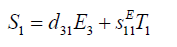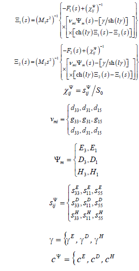here Tj - the mechanical stress, Em - the electric field strength, Hm - the magnetic field strength, SijE,H - the elastic compliance for E = const , H = const , dmiH - the piezo module, dmiE - the magnetostriction coefficient, Si - the relative deformation, the axis i, j, m.