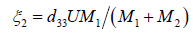 For d33 = 4∙10-10 m/V, U = 75 V, M1 = 1 kg, M2 = 4 kg the static deformations ξ1 = 24 nm, ξ2 = 6 nm and ξ1+ξ2 = 30 nm are calculated at error 10%.