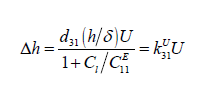 For d31 = 2∙10-10 m/V, h/δ = 22, Cl/C11E = 0.1 the coefficient k31U = 4 nm/V is determined at error 10%.