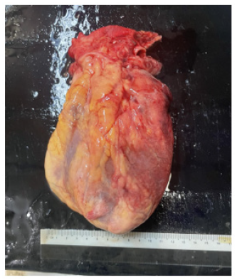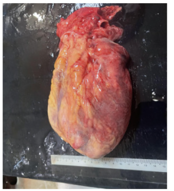 Figure 7: Post-mortem examination of lateral view heart showing hyperemia over surface of left ventricle.