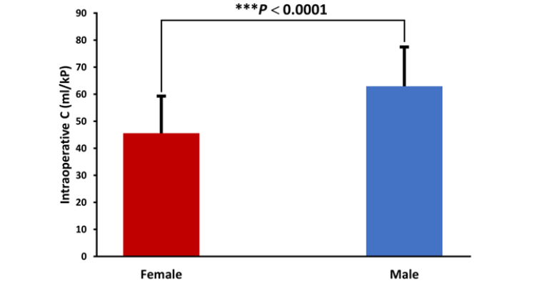 Figure 7: A comparison of the intraoperative pulmonary compliance between male and female patients. The difference was highly significant (P<0.0001). C, pulmonary compliance.