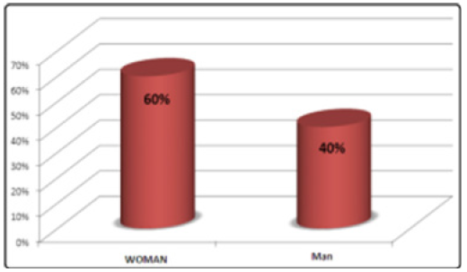 Epidemiological Profile 44 patients with digestive neuroendocrine tumors were treated by the medical oncology service. With an average of 4.44 patients/year, the age of the patients at the time of diagnosis varied between 16 years and 77 years. The average age was 50.42 years with a standard deviation of 14.72 (years) and a peak between 50 and 60 years. A slight female predominance was noted since the female sex represents 60% of the patients and the sex ratio M/F is 0.66 (Figure 1).