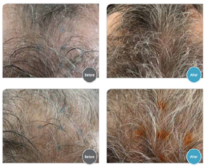 The Investigators' assessment of hair growth was conducted from the pictures taken from each patient before and at the end of the treatment. A growth sufficient to achieve a less pronounced pattern of baldness was classified as minimal improvement of hair growth. Moderate growth meant that there was a visible change. As for the dense level, it was described as sufficient growth to be cut and combed.