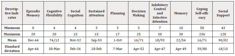 While cognitive decline is a natural part of aging, significant variability exists in the cognitive abilities of older adults. Resource Protective Factors (RPFs) play a crucial role in shielding individuals from the negative impacts of stressors, with internal factors like self-efficacy and external factors such as social support contributing to this protective mechanism. Research indicates that internal and external resources can influence cognitive performance in old age. This study investigates coping self-efficacy and social support as internal and external resources, respectively, aimed at alleviating age-related declines in executive functions and episodic memory. Bandura (1977) described coping self-efficacy as the belief in one's capacity to effectively deal with challenges, a widely recognized concept in coping and stress-related research [14]. This construct involves problem-solving, emotional regulation, and leveraging support from one's social network [3]. Numerous studies have explored the correlation between self-efficacy and chronic diseases in older adults [15].