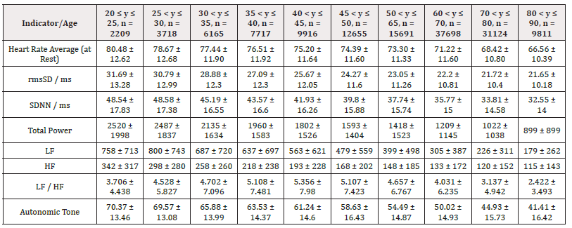 A detailed analysis of the correlation between HRV and age, and the clarification of the correlation between the two, provides a theoretical basis for researching and exploring the status of autonomic function in the elderly in clinical medicine. Furthermore, it provides a theoretical basis for further diagnosis and prevention of other diseases, enabling doctors to pay attention to the status of autonomic function in a timely manner and monitor the condition of autonomic function in a targeted manner. This allows for the implementation of effective interventions. Conversely, it elucidates the correlation between HRV and age. Conversely, the correlation between HRV and age has been elucidated, and HRV can be employed to assess the biological age of the body and to evaluate the health status of the human body.