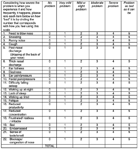 a. The Sino nasal Assessment Questionnaire (SNOT-22)