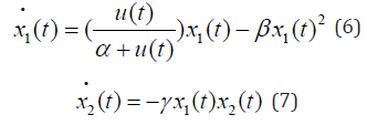 where the parameters {α ,β ,γ }are all positive, for example, {α = 0.5,β = 0.2,γ = 5}. The state 1x (t) denotes the concentration of bacteria while x2 (t) represents the concentration of contaminants all at time t. The concentration of input nutrient denoted by u(t) serves as the control variable. It is well-known that the bacteria degrades contaminants via co-metabolism, meaning that the degradation of the contaminants is a byproduct of the bacterial metabolism. The objective is to reduce the concentration of contaminants by the end of a given time period I ≡ [0,T] . So it is natural to consider the cost functional as