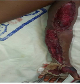 Envenomations in sub-Saharan Africa are frequent and are responsible for more than 20,000 deaths per year. Viperine envenomation is the most common in the savannah zone and is the cause of clinical manifestations commonly associating an inflammation syndrome with edema, cutaneous disorders with necrosis and haemorrhagic manifestations. Indeed, venoms of viperids are rich in enzymes of varying specificities. Some destroy the tissues around the bite and cause severe necrosis. Other enzymes act on the various stages of haemostasis, in particular coagulation leading to haemostasis disorders [1,2]. Viper syndrome can progress to local (gangrenous, compartment syndrome) and systemic (CIVD, renal failure, pulmonary edema) complications. The syndrome of the lodges is characterized by a muscular ischemia consecutive to an abnormal increase of pressure in a box osteo-aponeurotic little or no extensible. The occurrence of this syndrome in the wake of a viperin envenomation remains a dreaded complication emanating from the necrotizing effect of venom on the tissues. Its treatment is surgical, but many teams reserve the surgical intervention for failures of treatment with antivenom [3,4].