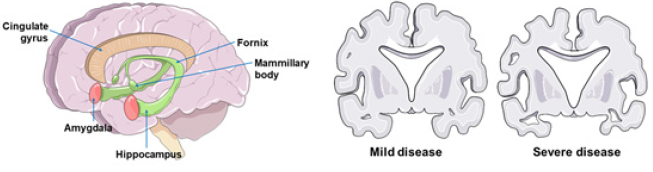 AD is a neurodegenerative disease, in which mainly atrophy of the hippocampus is observed, responsible for the clinical picture of progressive loss of formation and invocation of memories. In its terminal stage it can also affect areas of the cerebral cortex (Figure 1), thus affecting other functions, such as the ability to perform precise movements, choose words, and the sensibility of the senses. Even with this morphological difference it is not possible to accurately diagnose AD, since the healthy individual may present similar morphological changes, but from other causes other than AD [6] (Figure 1).