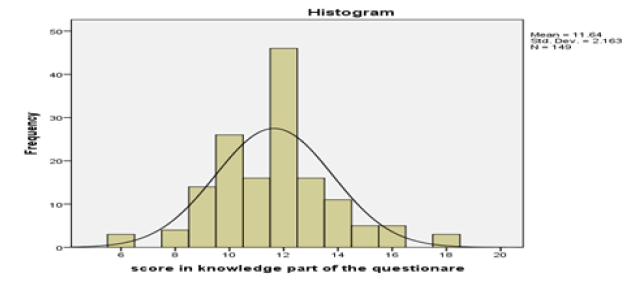 The demographic characteristic of participants is summarized in Table 1. The mean knowledge of participants related to SPs is 11.64+2.16 out of 20 with maximum 18 and minimum 6 30%. Chart 1 shows the result. A significant result with p-value 0.011 was obtained when independent T test was applied on training of infection control and SPs Knowledge. The mean compliance is 33.83+10.84 with the maximum 59 while the minimum 10 out of 60. Chart 2 shows the result. Applying independent sample T-test a highly significant association were noted between gender with compliance and between infection control training status and compliance with p-values of 0.006 and 0.001 respectively. Table 2 summarizes the overall responses of participants to the compliance part. 10 questions were asked about factors affecting Nurses compliance to SPs. Unavailability of resources like personal protective equipment (PPEs) were highlighted by 73.6% participants as factors affecting nurses’ compliance. 55.7% participants highlighted workload while 75.8% participants mentioned that unavailability and dissemination of infection control policies as main factor affecting their compliance to SPs. The overall result of factors affecting nurses’ compliance to SPs is given in Table 3.
