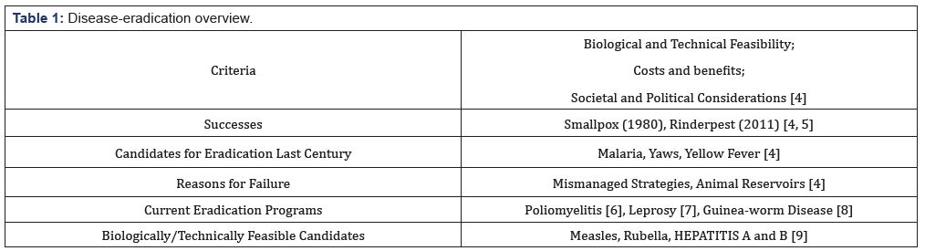 - Alyward B, Hennessey KA, Zagario N, Olive J M, Cochi S (2000) When Is a Disease Eradicable? 100 Years of Lessons Learned. American Journal of Public Health 90(10): 1515-1520.