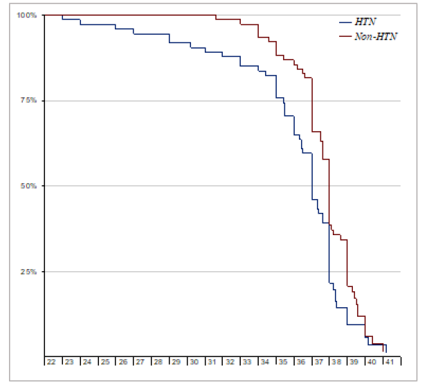 According to population data, hypertensive disorders in pregnancy affect around 10% of pregnant women. They can be preexisting hypertension in 1%, preeclampsia in around 2% and 6 % pregnancy induced hypertension (hypertension without proteinuria). Preexisting hypertension, defined as a diastolic blood pressure > 90mmHg and/or a systolic > BP of 140mmHg, is associated with increased risk of perinatal and maternal complications. Pregnancies affected with hypertension are associated with an increased risk of unfavorable fetal outcomes such as intrauterine growth restriction, low birth weight, and intrauterine fetal demise (IUFD) [1]. In Qatar, the exact risks to the fetus from chronic hypertension remain to be fully studied. The current study aims to look into the fetal outcomes among hypertensive pregnant women at a tertiary maternity facility in Doha, Qatar.