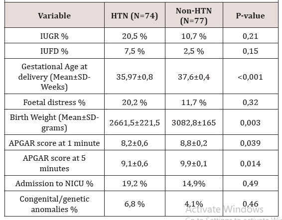 The rates of intrauterine growth restriction in the hypertensive group were double that of the control group (20.5% and 10.7%) respectively. Furthermore, the rates of intrauterine foetal death were three times as much in the hypertensive group compared to the control group (7.5% vs 2.5%). These numbers however didn’t reach statistical significance.