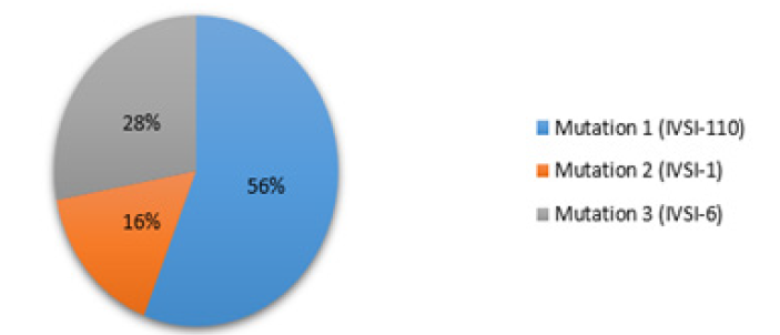 The results showed that 25 patients were positive and 36 patients were negative to 5 mutations including in the study, the frequency of IVS-I-110 positive mutations was14 (56%) which is the most common followed by IVS-I-6 (T→C) mutation which was positive in 7 patients (28%) and IVS-I-1 mutation which was positive in 4 (16%) (Table 2), whereas 36 (59%) patients showed negative for IVS-I-5 and -87 which were not detected in the present study. The gender distribution of 25 patients with positive mutations was 8 males and 17 were female (Figures 1-3). According to the age group our results were positive in 16 Children and 45 were positive in adults (Table 2), In IVSI-110 the frequency of adults were 9 while children’s were 5, for IVSI-1 2 positive cases were adult while 2 were children, IVSI-6 showed 2 positive adults and 5 in children’s. Out of 61 beta-thalassemic patients the frequency of adults (15-54 years) was 45(73.8%), and 16 (26.2%) was children’s (2year -15 years) as shown in (Table 2).
