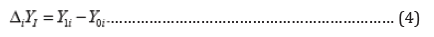 Y1 = (Quantity of produced harvested per acre * Market price of crop) …………… (1)