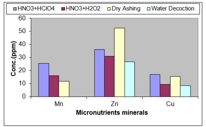 Practically four methods were used; the dry ashing, wet digestion, Aqueous Extraction and as tea by detection of leaves in boiling water: