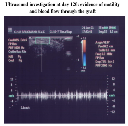 Figure 4: Functional evolution of a foetal heart implanted into a subcutaneous pouch in the ear pavilion at months 4-8