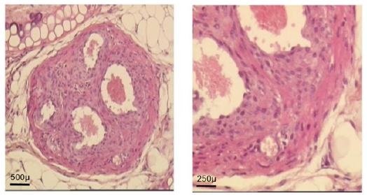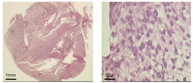 Figure 5A: Morphological evolution of fetal heart implanted into a subcutaneous pouch of the ear pavilion. (haematoxylin eosin). Before implantation
